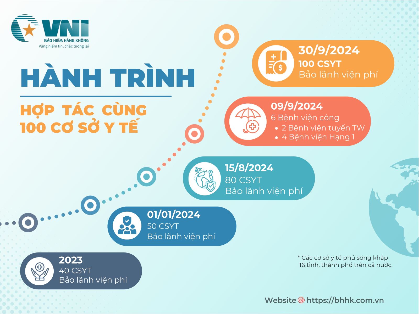Hành trình hợp tác của VNI với các cơ sở y tế không chỉ là một dấu mốc thành công về mặt số lượng mà còn là sự khẳng định chất lượng và sự tin cậy mà VNI mang đến cho khách hàng trên toàn quốc. Hành trình này thể hiện nỗ lực của VNI trong việc mang đến dịch vụ bảo hiểm toàn diện, đặc biệt là chương trình bảo lãnh viện phí, hỗ trợ trực tiếp cho khách hàng khi cần chăm sóc sức khỏe.