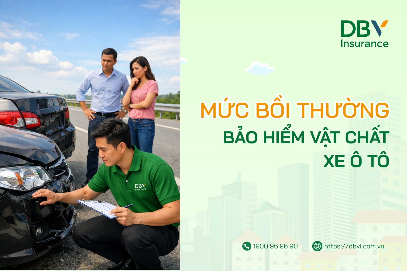 DBV chịu trách nhiệm bồi thường cho Chủ xe đối với các thiệt hại vật chất của xe (thuộc phạm vi bảo hiểm) phát sinh do tai nạn bất ngờ, rủi ro không lường trước hoặc thiên tai, bao gồm: