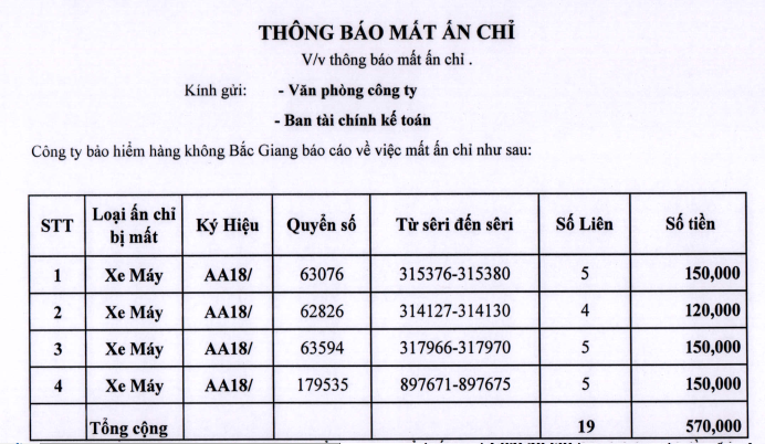 THÔNG BÁO MẤT AC VNI-BẮC GIANG