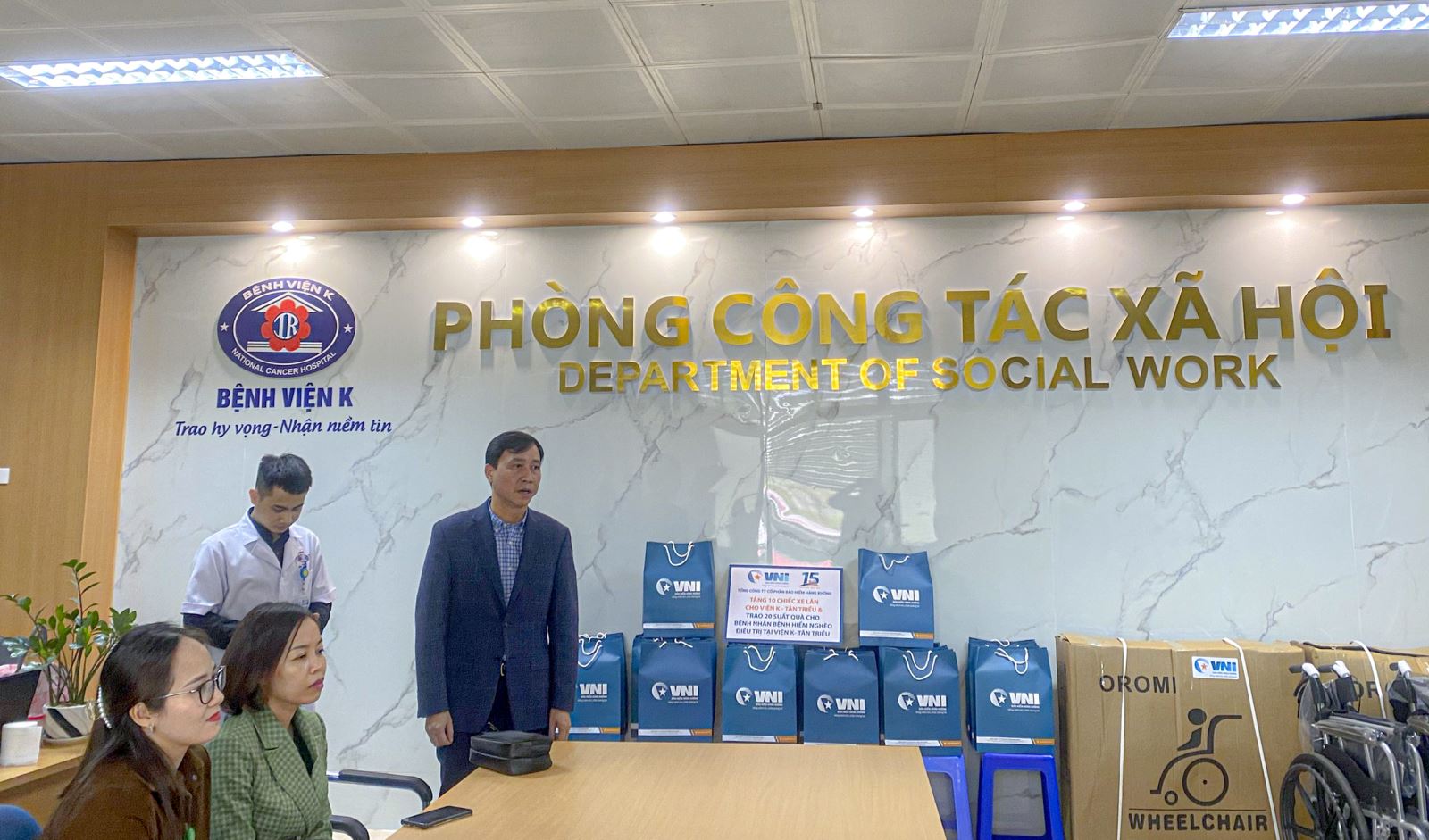 Phát biểu tại buổi lễ, Phó TGĐ Lê Mạnh Cường chia sẻ: Ngoài hoạt động kinh doanh, VNI luôn quan tâm đến hoạt động xã hội, cộng đồng thông qua nhiều chương trình ý nghĩa như chung tay cùng chính phủ trong công tác phòng chống covid, hiến máu nhân đạo, ủng hộ quỹ vì biển đảo Việt Nam, ủng hộ quỹ vì người nghèo, ủng hộ công tác an sinh xã hội cùng nhiều hoạt động thiện nguyện ý nghĩa khác. Phần quà trao lần này tuy nhỏ nhưng là tình cảm của CBNV VNI gửi đến Viện K cũng như bệnh nhân điều trị nơi đây với mong muốn đây là nguồn động viên, tiếp thêm động lực để các bệnh nhân nhanh khỏi bệnh, trở về đoàn tụ với người thân và gia đình.