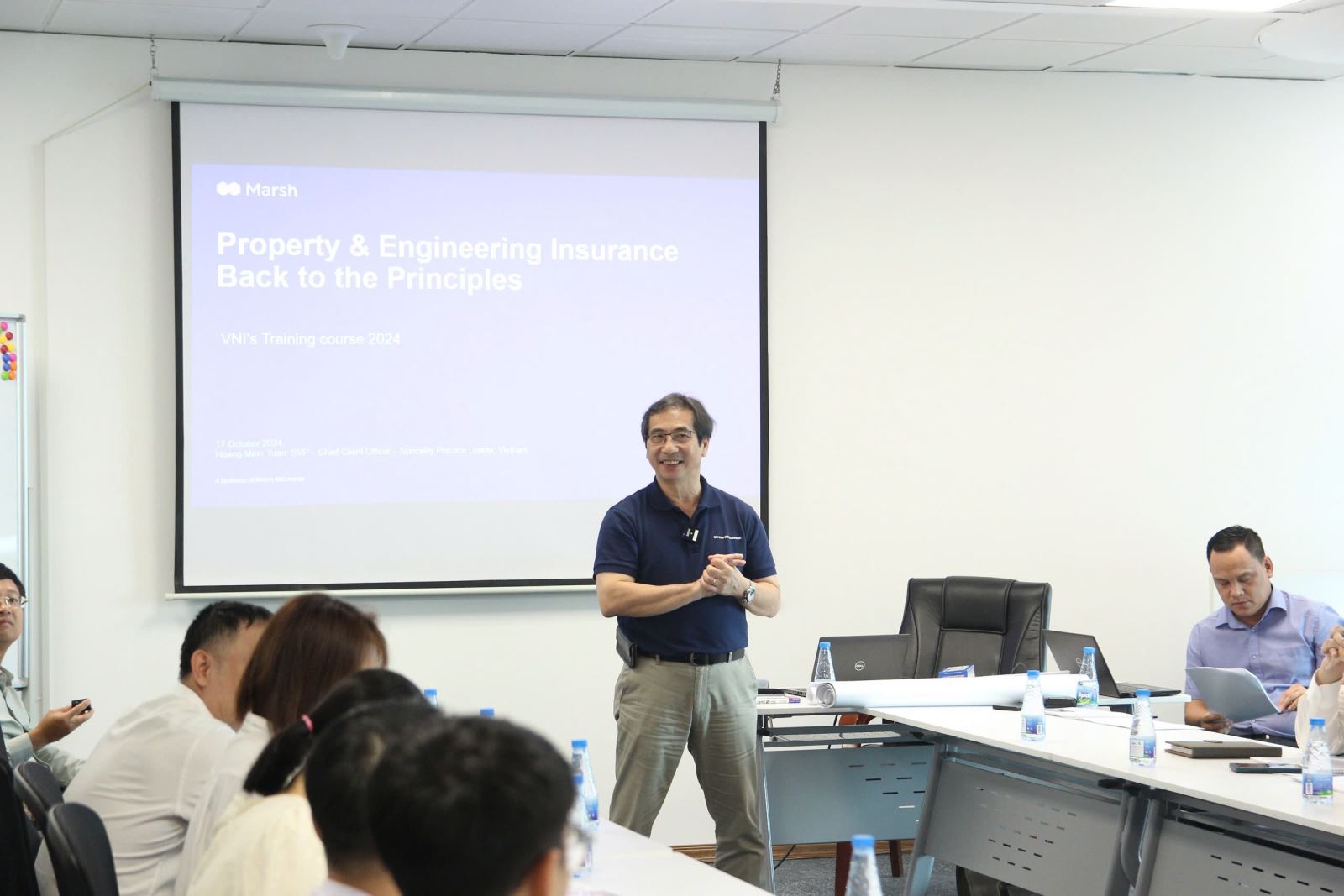 Phát biểu khai mạc khóa đào tạo, Tổng Giám đốc VNI - ông Nghiêm Xuân Thái khẳng định: “Khi làm việc nhiều năm trong lĩnh vực này, đôi lúc kinh nghiệm lại khiến chúng ta quên đi những kiến thức cơ bản, là nền tảng quan trọng nhất giúp chúng ta từ đó nâng cao chuyên môn nghiệp vụ. Chính vì vậy, trong khóa học lần này, Ban Lãnh đạo VNI mong muốn các học viên sẽ tiếp thu kiến thức nền tảng và chuyên sâu liên quan đến hợp đồng bảo hiểm tài sản kỹ thuật. Đồng thời, Tổng Giám đốc cũng chia sẻ thêm về định hướng tầm nhìn Top 5 DNBH phi nhân thọ của VNI trong thời gian tới bằng việc đẩy mạnh hơn nữa, tăng trưởng doanh thu lĩnh vực bảo hiểm tài sản, kỹ thuật & hàng hải. Để vươn lên tầm cao mới, VNI phải đẩy mạnh cải tiến chất lượng dịch vụ sau bán hàng, đặc biệt thường xuyên tổ chức các khóa đào tạo nhằm nâng cao năng lực chuyên môn nghiệp vụ, kỹ năng chăm sóc và phục vụ khách hàng.