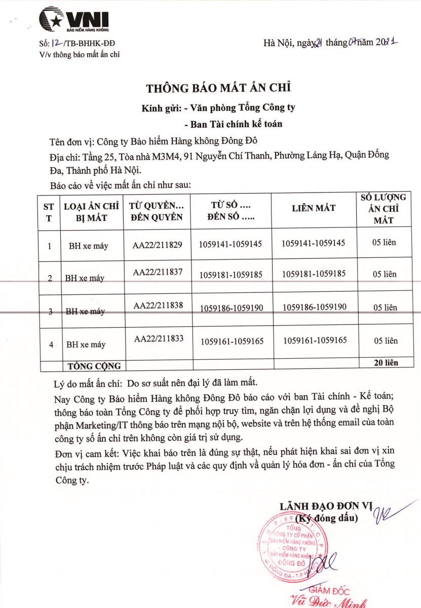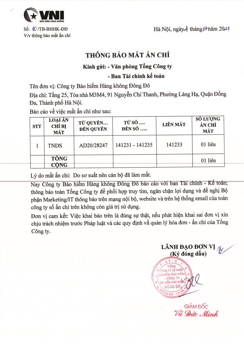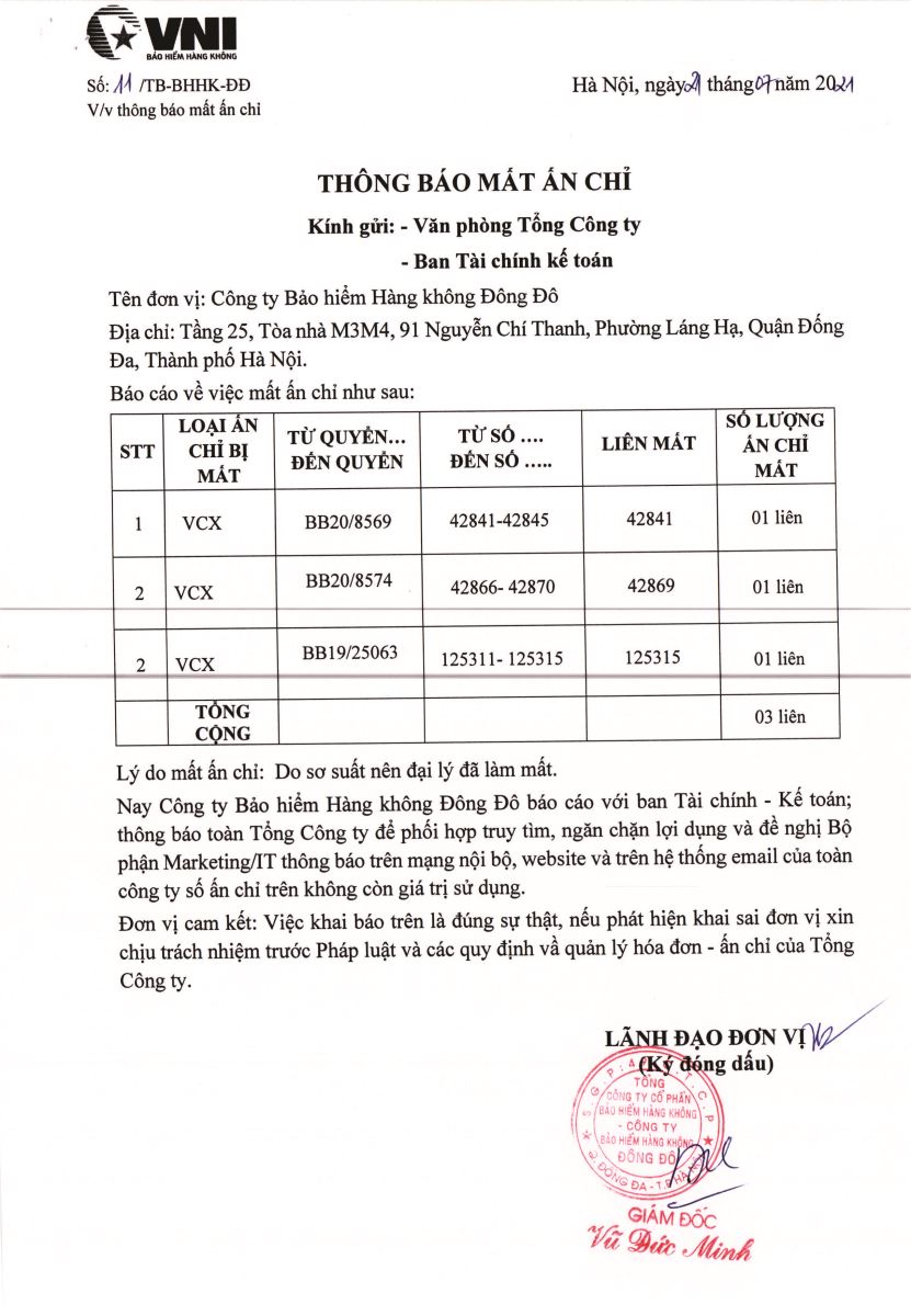 VNI Đông Đô thông báo mất ấn chỉ (Số 10,11,12)