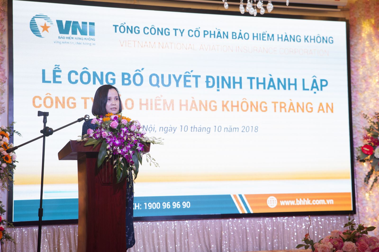 Phát biểu tại buổi lễ khai trương, bà Lê Thị Hà Thanh - Chủ tịch HĐQT VNI đã chúc mừng khai trương thành lập và đánh giá tiềm năng phát triển của thành phố Hà Nội - trung kinh tế, chính trị văn hóa của cả nước, thị trường bảo hiểm phi nhân thọ còn rất nhiều tiềm năng để khai thác tạo một thành phố năng động, nơi VNI đặt trụ sở chính trong 10 năm qua. Với việc ra đời của VNI Tràng An là đơn vị thành viên thứ 6 của VNI tại thành phố Hà Nội đã tạo nên một mạng dưới mạnh để khai thác, chăm sóc, phục vụ khách hàng ngày được tốt hơn. Chủ tịch cũng chân thành cảm ơn Lãnh đạo UBND Thành phố, Sở, Ban, ngành cùng đối tác, khách hàng đã quan tâm, giúp đỡ và mong tiếp tục nhận được sự ủng hộ trong thời gian tới để VNI Tràng An phát triển trong thời gian tới.