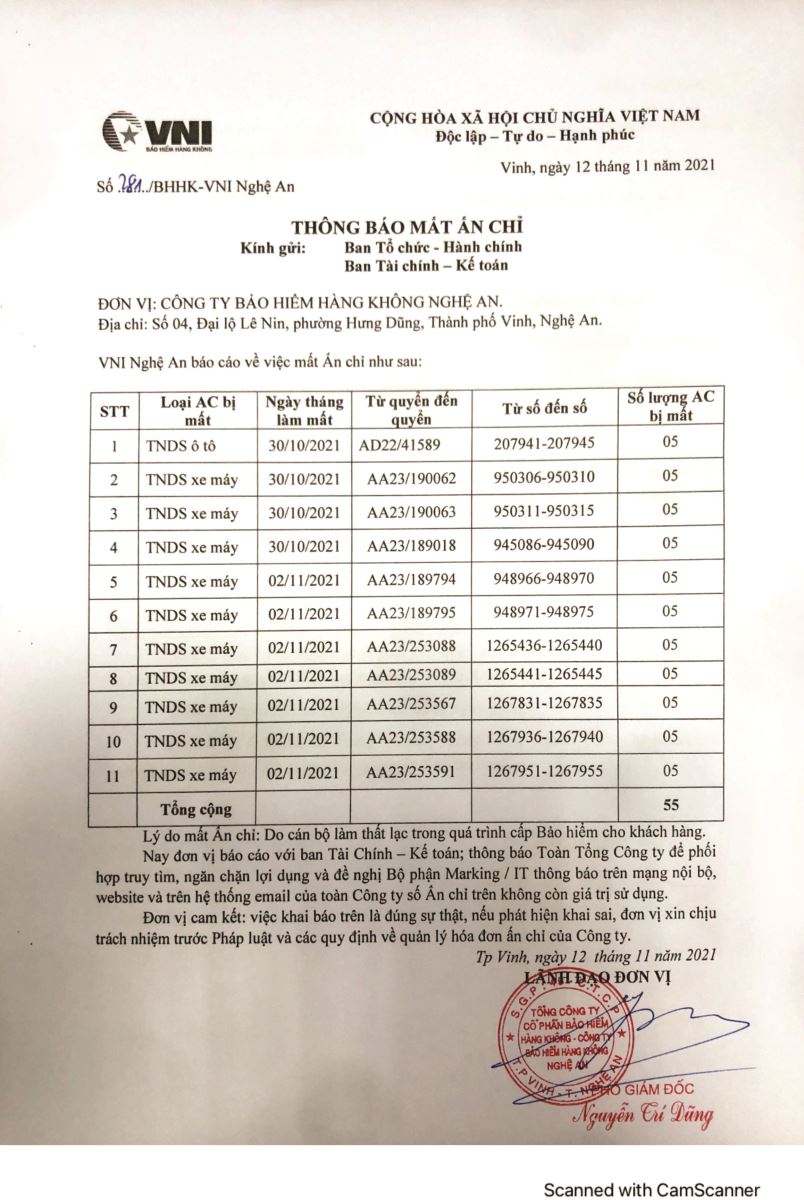 VNI Nghệ An thông báo mất ấn chỉ (Số 281)