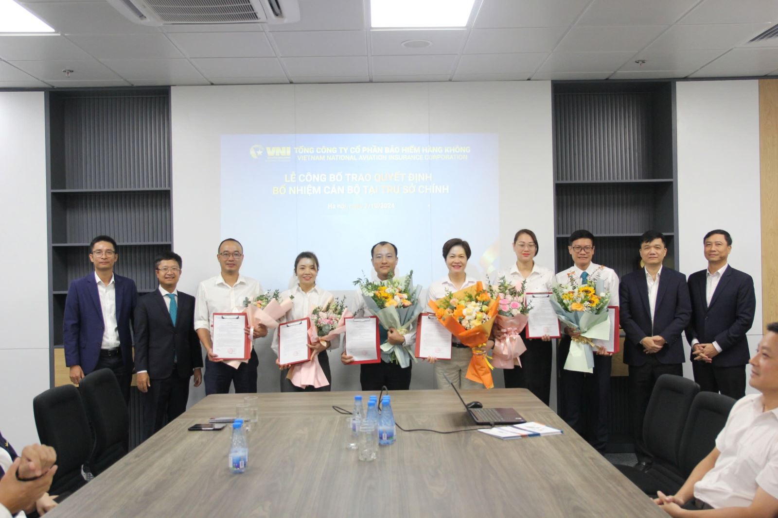 Sáng ngày 7/10/2024, Tổng Công ty Cổ phần Bảo hiểm Hàng không (VNI) đã tổ chức lễ công bố và trao quyết định bổ nhiệm cho 6 phó giám đốc các Ban tại Trụ sở chính. Đây là một trong những hoạt động nhằm kiện toàn đội ngũ nhân sự lãnh đạo cấp trung, đáp ứng chiến lược phát triển đầy tham vọng của VNI trong thời gian tới.