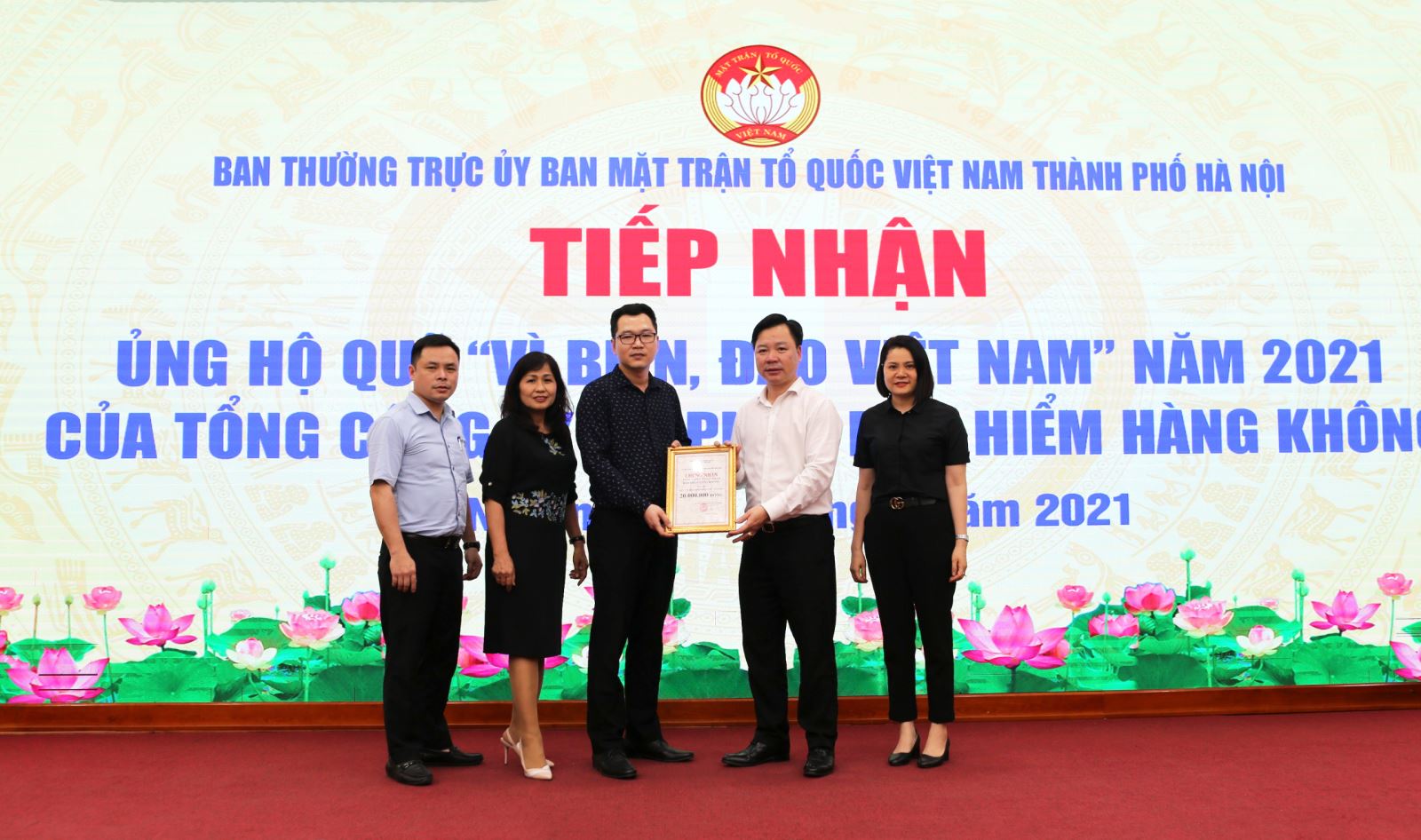Chào mừng kỷ niệm 13 thành lập Tổng Công ty Cổ phần Bảo hiểm Hàng không (VNI), chiều qua (01/04/2021) Đại diện Công đoàn VNI đã trao tặng 20 triệu đồng ủng hộ Quỹ “Vì biển, đảo Việt Nam” cho Ủy ban Mặt trận Tổ quốc Việt Nam Thành phố Hà Nội.